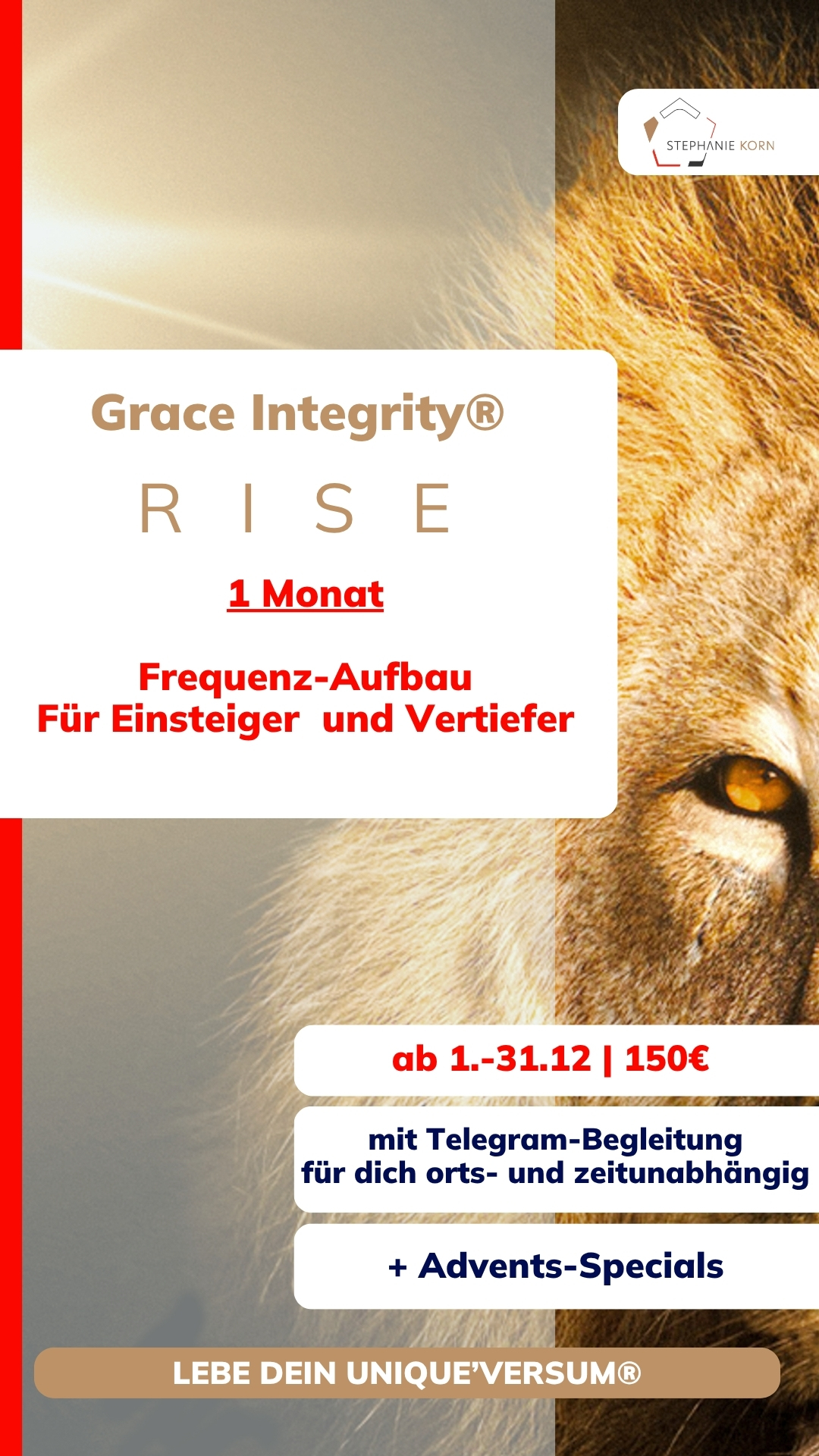 Und falls du das lieber erstmal in einem Gruppenprogramm erleben willst: In „RISE“ fließen einige dieser kraftvollen Elemente ein – für deinen Start in ein erfülltes, bewusstes und kraftvoll manifestiertes Leben in Frequenz, Frieden und Freude.